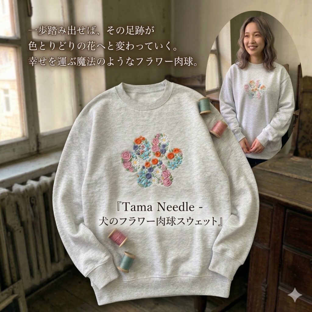 犬のフラワー肉球スウェット|日常にやさしい彩りを